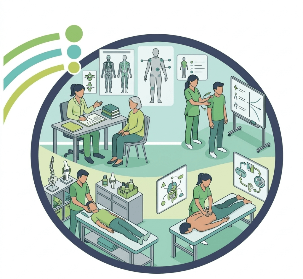 - Trattamento Disturbi Neuro-Muscolo-Scheletrici: affronto dolori articolari e muscolari, cronici o acuti (come mal di schiena e sciatalgie), utilizzando tecniche di terapia manuale ed esercizio terapeutico per migliorare la qualità del tuo movimento e ridurre l’infiammazione.